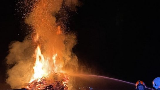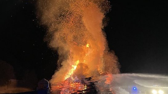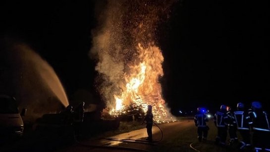 Schon bei der Anfahrt zum Feuerwehrhaus war ein kilometerweiter Feuerschein zu sehen.