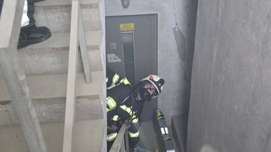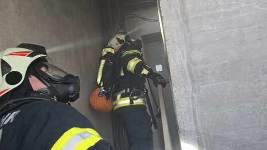 Beim Innenangriff entdeckte der erste AS-Trupp eine Person im Aufzug. Die Rettung dieser Person wurde vom zweiten AS-Trupp durchgeführt, während sich der erste Trupp weiterhin der Brandbekämpfung und der Suche nach einer zweiten vermissten Person widmete. Parallel dazu traf die Drehleiter der FF Aspach ein und begann mit dem Außenangriff.